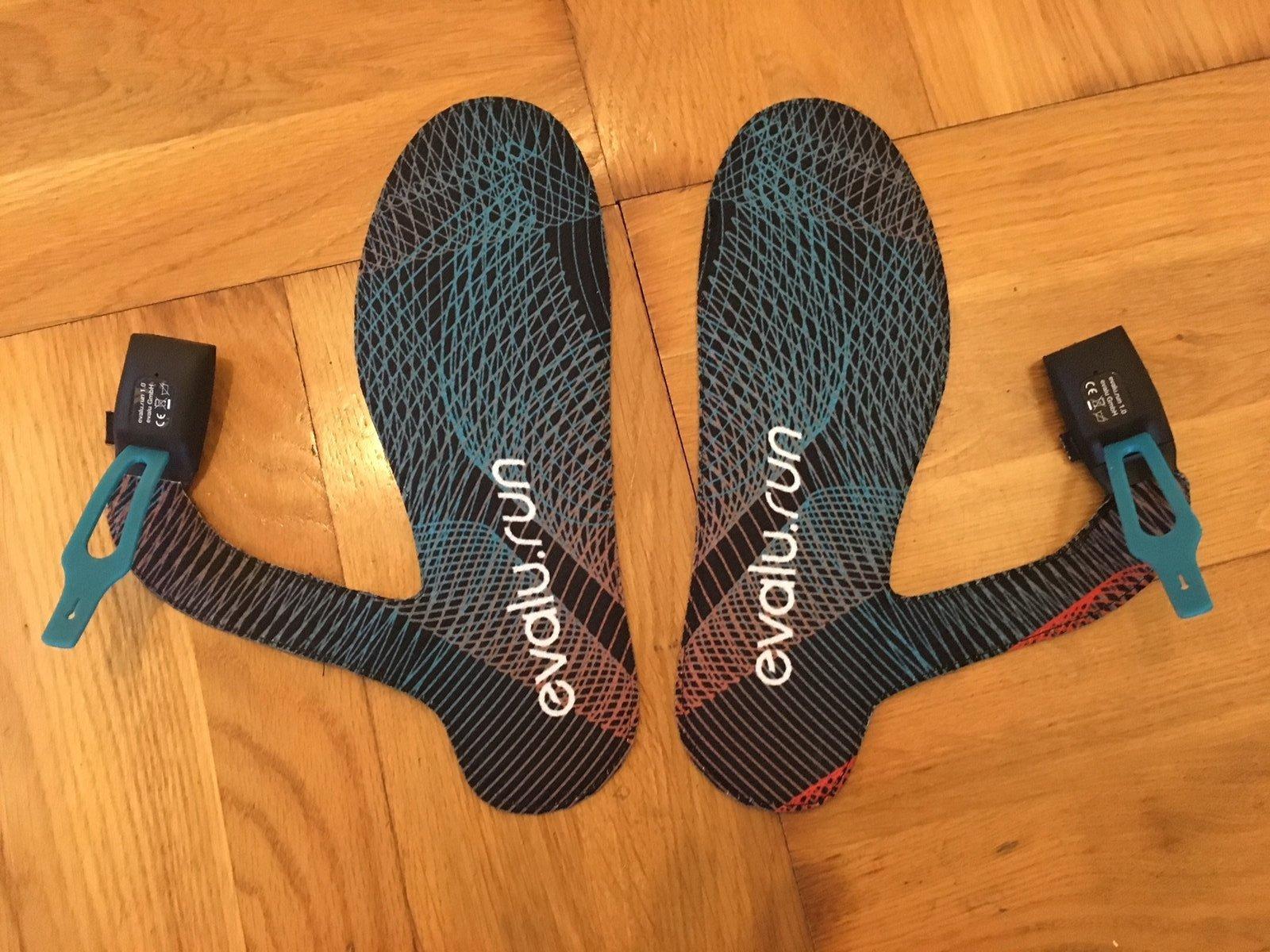 Ich kann die Hightech-Sohlen unter die Innensohle meiner Laufschuhe einlegen oder sie stattdessen verwenden – seitlich führt eine Verbindung zu einem kleinen Bluetooth-Gerät, das einfach an den Schuhbändern festgebunden wird. Über die Evalu-App verbinde ich mich blitzschnell mit meinen Fußsohlen: wie bei einem Seismografen sehe ich ab sofort genau, wie ich meine Füße belaste.