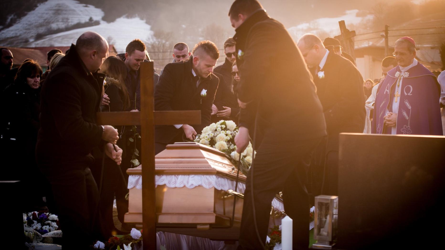 Das Paar wollte im Mai heiraten; sie waren am vergangenen Sonntag in Velka Maca, 65 Kilometer östlich von Bratislava, erschossen aufgefunden worden. Die Trauerfeier in Stiavnik begann mit der Verlesung eines von Kuciak verfassten Gedichts für seine Verlobte, das er bei der Hochzeit vorlesen wollte.