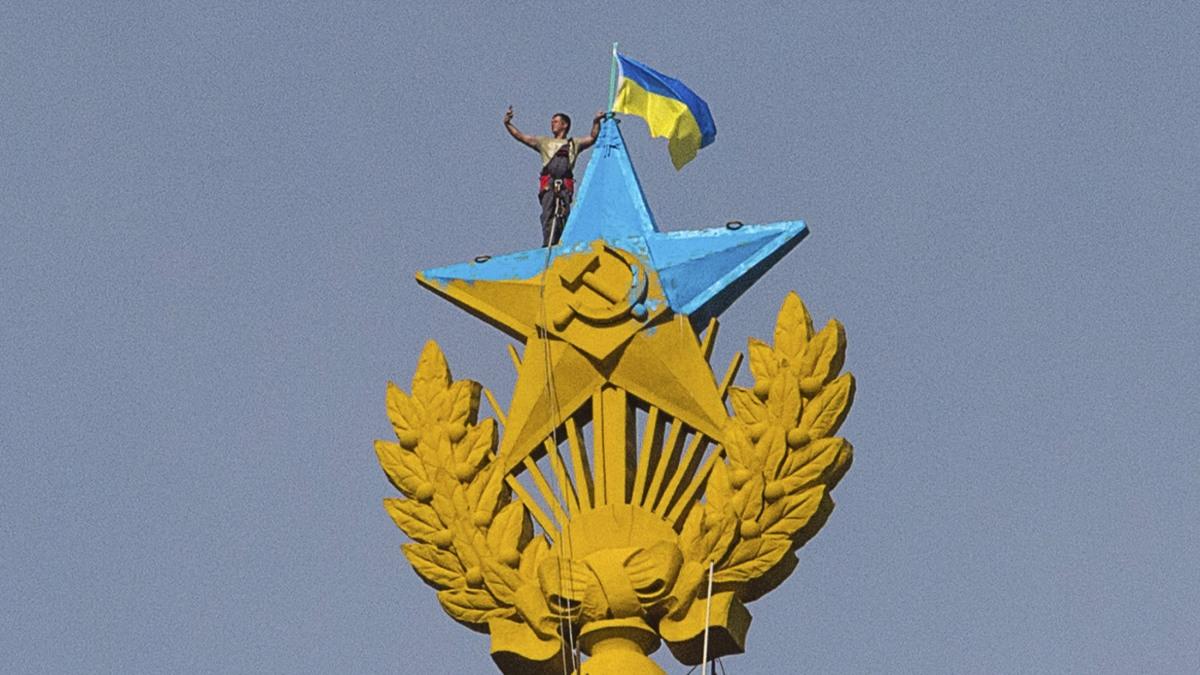 In Moskau haben Unterstützer der Ukraine auf einem Hochhaus die ukrainische Flagge gehisst. Ermittlungen zufolge kletterten die Aktivisten von der obersten Etage aus zum goldenen Sowjetstern auf der Spitze des 176 Meter hohen Gebäudes. Dort brachten sie die Flagge an und malten den Stern zur Hälfte blau an. Wie die Polizei am Mittwoch meldete, droht den Aktivisten Anklage wegen Vandalismus.