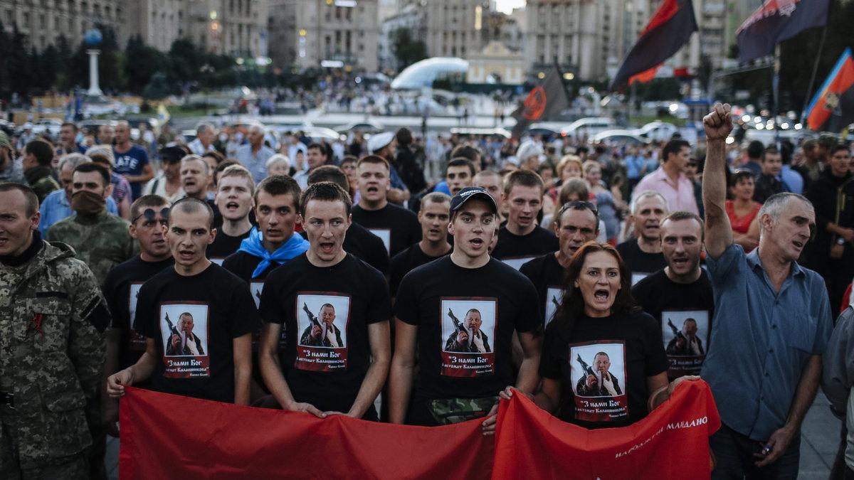 Ruf nach ReferendumAm Dienstag marschierten in Kiew Hunderte Anhänger der Miliz mit Forderungen auf: Abhaltung eines Referendums, in dem Parlament und Regierung das Misstrauen ausgesprochen werden, Ausrufung des Ausnahmezustandes, die Qualifizierung der von der Ukraine als Antiterror-Operation eingestuften Kämpfe im Osten als Krieg mit Russland, Legalisierung der Freiwilligen-Bataillone. Der Anführer des Rechten Sektors, Dmitro Jarosch, sagte, dass man die Revolution auf eine neue Stufe hebe.