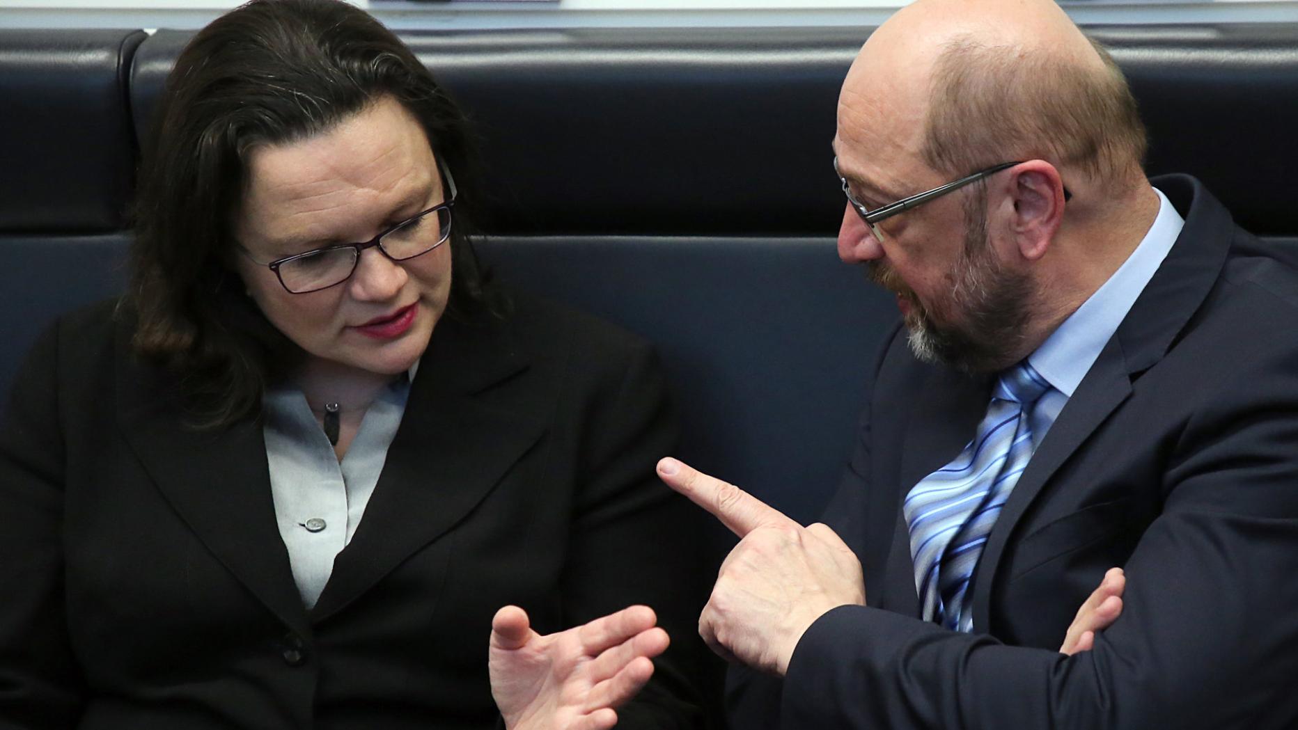 Als Juso-Chefin bezeichnete sie Schröder einst als "Abrissbirne an der SPD-Programmatik", trommelte gegen seine "Agenda 2010"-Reformen (Hartz IV). An den Stühlen von Rudolf Scharping und Franz Müntefering sägte sie ebenfalls mit. Nun steht die 47-Jährige selbst bald an der Parteispitze, aber auch in der Kritik. Nicht allen gefiel der Plan der Parteispitze, dass sie nach Schulz' Abgang sofort übernehmen sollte. Vor allem die Landesverbände und Parteilinken forderten ein transparentes Verfahren: Einer der Stellvertreter müsse den Chefsessel übernehmen – bis Nahles auf einem Parteitag zur Wahl steht.