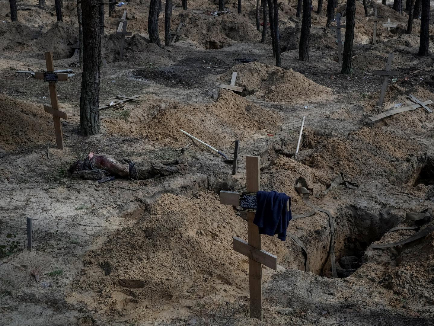 In der vor kurzem von ukrainischen Truppen befreiten Stadt Lyman sind ukrainischen Medien zufolge Gräber von mehr als 50 Zivilistinnen und Zivilisten gefunden worden. "Die Russen haben Gräben ausgehoben und Personen, die sie der Kollaboration mit dem ukrainischen Militär verdächtigten, gezwungen, die Leichen der Toten für die Umbettung einzusammeln", teilte der ukrainische Internet-Fernsehsender Hromadske am Mittwoch mit. Dazu präsentierte er Fotos der Grabstätte.