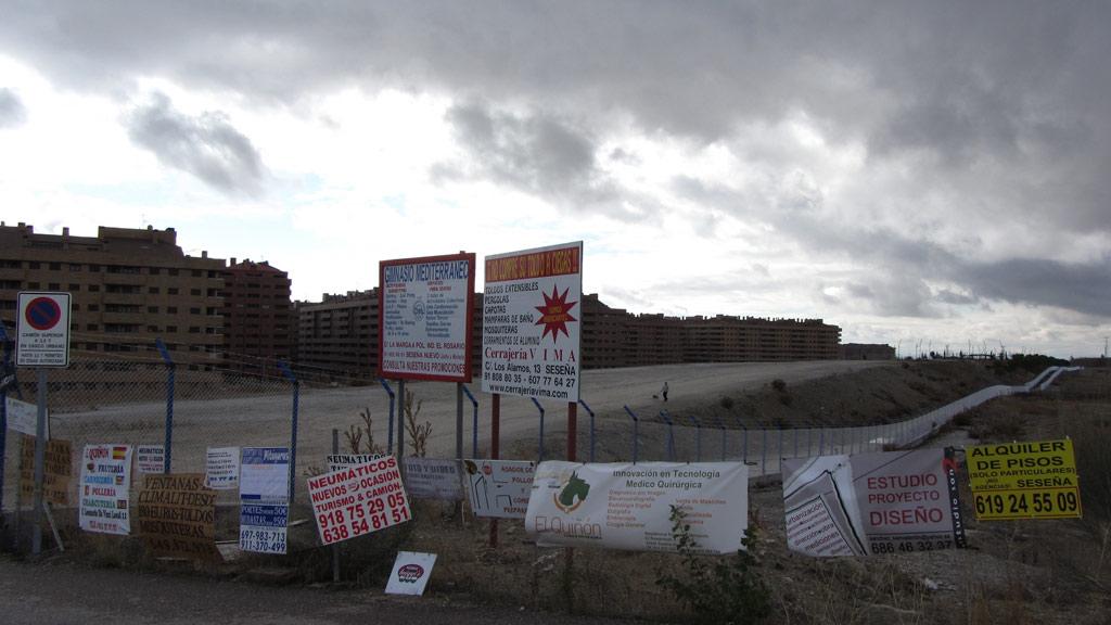 Die "Geisterstadt", so nennt sie hier jeder, die fängt gleich hinter dem letzten Haus an. Dort ist dann nur noch der Bauzaun, ein paar riesige Gruben und weit dahinter eine verwitterte Werbetafel in den endlosen Hügeln der Mancha. Das Bild darauf - kaum noch zu erkennen - zeigt, was hier entstehen sollte: Eine Stadt für Zehntausende Menschen, aus dem Boden gestampft von einem größenwahnsinnigen Bauherrn.