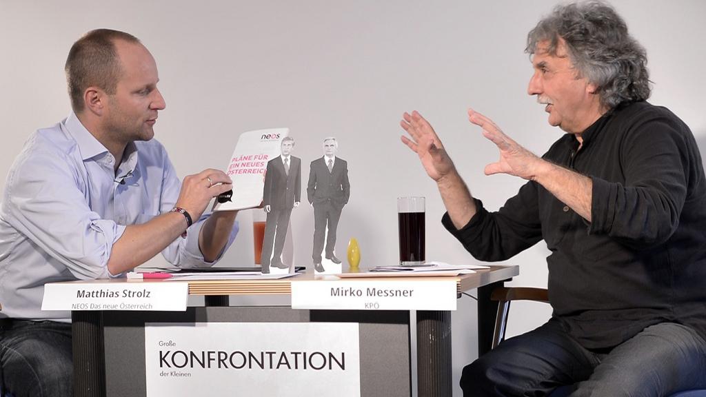 Wahlduelle einmal anders: Bei den "Großen Konfrontation der Kleinen" traten am Freitag Kandidaten der NEOS, der KPÖ und der Piratenpartei gegeneinander an.