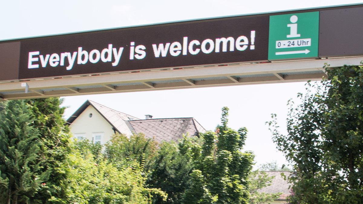 "Everybody is welcome!" – das steht auf der Ankündigungstafel über der Hauptstraße, wo die Veranstaltungen im Ort angekündigt werden – von denen es wegen der Flüchtlinge derzeit nicht weniger, sondern mehr gibt. Eine "Welcome Party" etwa, zu der 1000 Leute kamen und die 9000 Euro Spenden brachte.