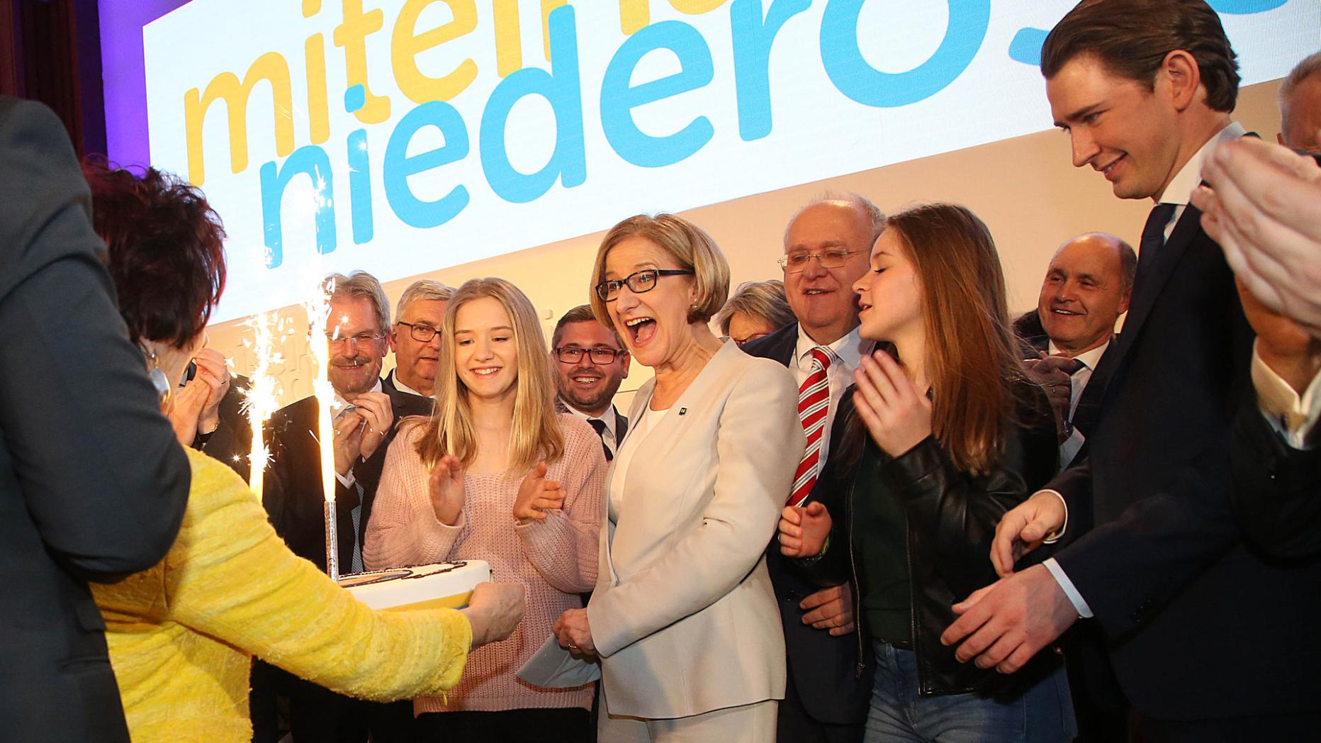 Mikl-Leitner und die ÖVP feiern