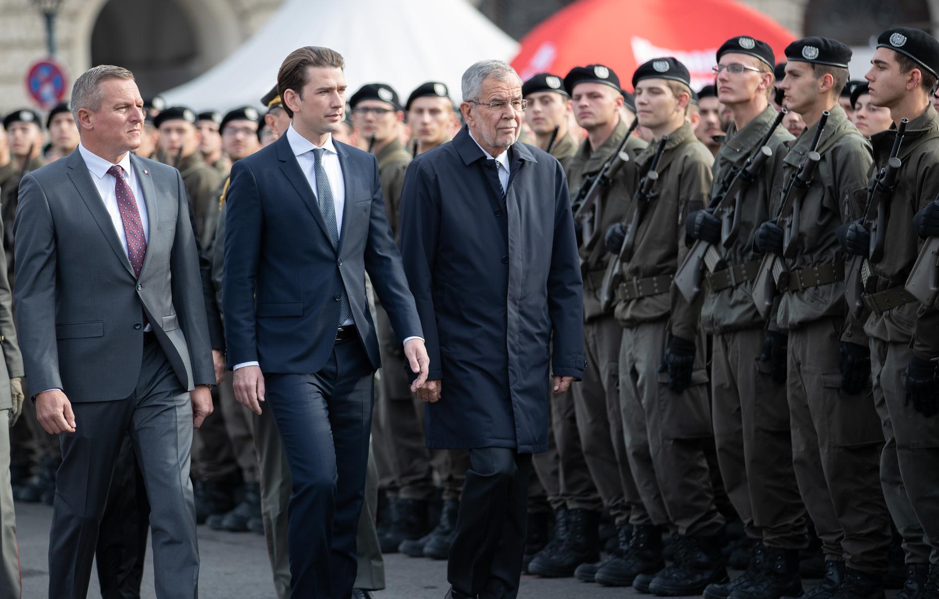 Kurz dankt Wiederaufbaugeneration für "Glaube an Österreich". Van der Bellen-Appell: Heer notwendiges Budget zur Verfügung stellen.