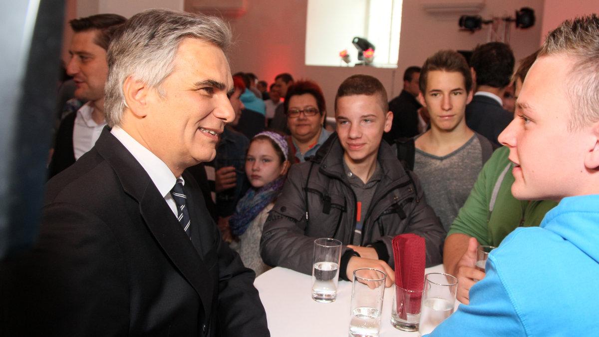 Es gibt Brötchen, Schaumrollen, Kaffee und Fruchtsäfte. Die Ovalhalle im Wiener Museumsquartier, dem beliebtesten Jugend-Hangout der Stadt, ist prall voll. Jugendliche aus ganz Österreich sind angereist, um auf Einladung der SPÖ am Samstagvormittag mit dem Kanzler zu frühstücken. Werner Faymann beschränkt sich in seiner Eingangsrede auf wenige Botschaften.