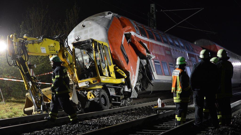 Regionalbahn kippte zur Seite. Der getötete Zugführer konnte auch mehrere Stunden nach dem Unglück noch nicht aus dem völlig zerstörten Führerhaus geborgen werden. "Die Bergungsarbeiten laufen auf Hochtouren", sagte Ahmari. Rund 100 Rettungskräfte und Feuerwehrleute waren die Nacht über im Einsatz. Die Bundespolizei nahm die Ermittlungen auf.