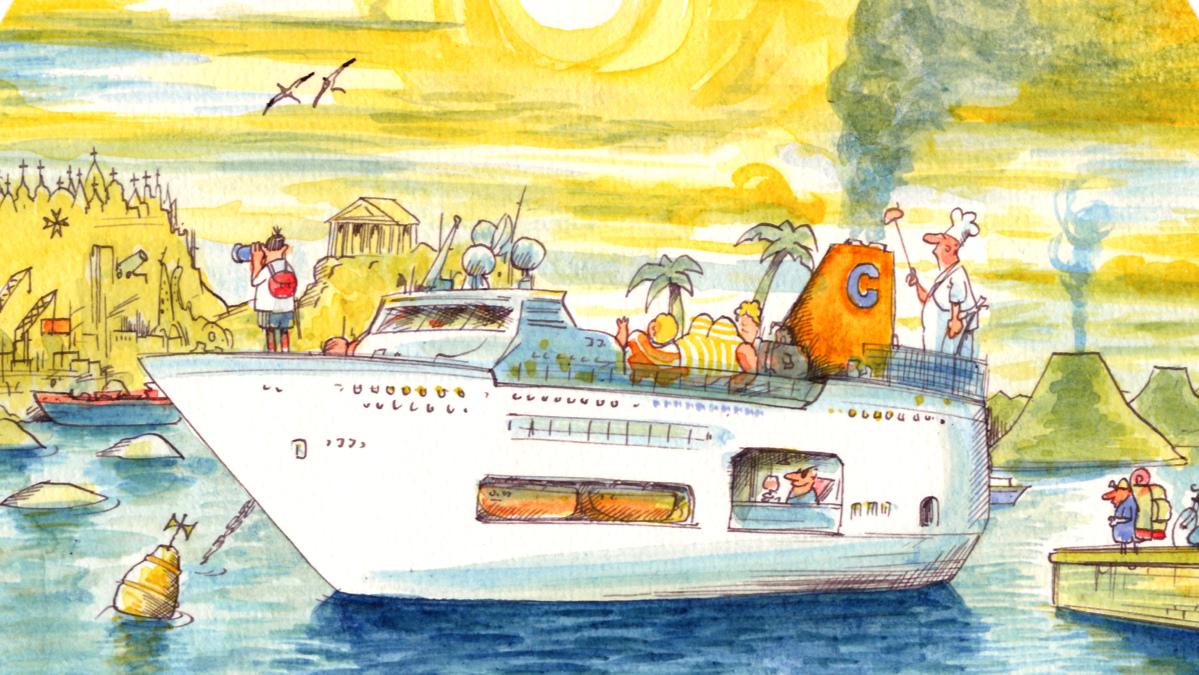 Ich bin schon so entspannt, dass ich völlig unvorbereitet dort ankomme. Nicht einmal die halbe Seite Touristeninformation über Barcelona hab’ ich mir am Schiff durchgelesen. Für schlechtes Gewissen ist es aber zu spät, und wir lassen uns herrlich treiben. Die Stadt ist ganz und gar geprägt vom weltberühmten Architekten Lionel Messi. Die unvermeidliche Hauptader ist eine Straße, die zu Recht "Rambla" heißt. Da gibt’s selbst für Messi kein Durchkommen. Oder übt der da? Messi bin ich übrigens begegnet, was heißt einmal – hundert Mal! Wenn Messi in Barcelona unerkannt spazieren gehen will, muss er nur ein Barca-Leiberl mit Messi hinten drauf anziehen. Fällt er keinem mehr auf.Keinem einzigen mit Gaudí-Leiberl bin ich begegnet, aber irgendwann stehen wir dann doch vor der berühmten Gaudí-Kirche: Ich sehe jedes meiner Vorurteile bestätigt. Ein Irrweg der Architektur. Letztes Aufbäumen des Schnörkels vor der Abschaffung. Der Dom von Schlumpfhausen. Kultur-Alternative: Salvador Dalí. Ein ähnliches Kaliber. Wer sich die Augen wieder einrenken will, kann das Picasso-Museum besuchen. Jetzt dürfen Sie wegen meiner Ketzerei aber nicht glauben, dass mir Barcelona nicht gefallen hat! Wunderbare Stadt, köstliche Tapas, spektakuläre Markthalle. Großstadt mit entspanntem Lebensgefühl. Spät zurück in mein schwimmendes Hotel. Das schaukelt im Meer und fährt los, der Dieselmotor brummt, oben stinkt es raus, und draußen tuckern die Lichter des Hafens vorbei und Leuchttürme und kanonenbewehrte Festungen glitzern im Meer in mein Bett.
