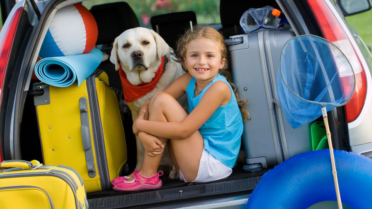 Auto, Urlaub, Kind, Hund, Kofferraum, Gepäck,Sommerurlaub