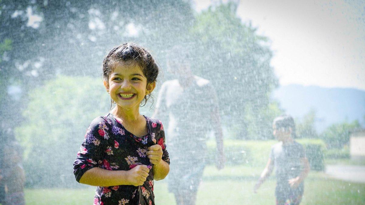 Reisinger die Aktion. Rund ein Dutzend Mitglieder der Feuerwehr und einige ihrer Familienangehörigen stellten, in Absprache mit dem Bürgermeister Franz Allerstorfer, ein Hydroschild in Bergheim auf. Besonders die Kinder freuten sich über die Idee. Nach erster zögerlicher Annäherung, verloren sie bald die Scheu und sprangen durch die erzeugte Wasserwand. „Ich habe gleich meine eigenen Kinder mitgenommen, damit sie den Spaß vorzeigen können“, meint Reisinger.