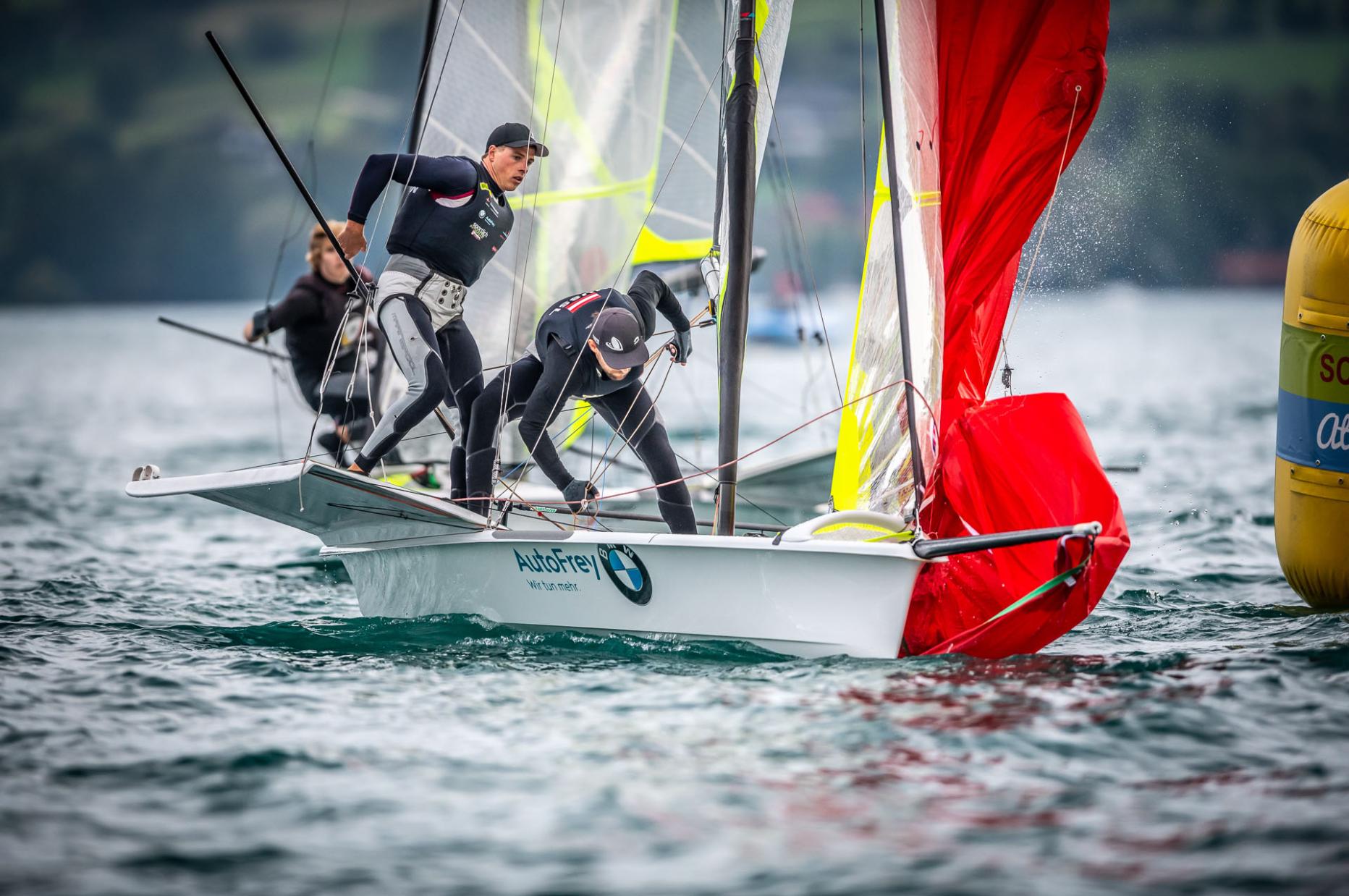 Im abschließenden Rennen der Europameisterschaft hatten die Österreicher auf dem Weg zu Gold großes Pech. „Wir wussten, dass wir einige Boote zwischen uns und die Deutschen bringen müssen. Es hat auch gut ausgeschaut, bis der Gennacker der vor uns fahrenden Iren plötzlich ins Wasser gefallen ist. Sie sind sofort stehengeblieben. Wir konnten nicht mehr rechtzeitig ausweichen und sind gekentert. Das hat uns die entscheidenden Meter gekostet, wir freuen uns aber trotzdem sehr über die Silbermedaille“, berichtet der Tiroler Vorschoter Hussl, der aus gesundheitlichen Gründen den EM-Auftakt am Dienstag noch verpasst hat. Steuermann Bildstein bestritt den Tag mit Trainer Ivan Bulaja. „Diese Woche war unglaublich. Wir haben durch die Erkrankung zuerst Trainingstage verloren und dann musste auch noch Ivan einspringen. Es waren schwierige Voraussetzungen, wir haben den ersten Tag aber überlebt. Dass sich die Regatta dann so entwickelt hat, ist sehr viel wert“, resümiert Bildstein.
