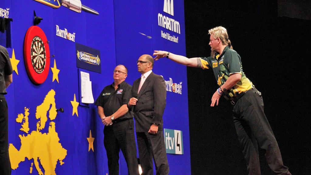 Es hat auf den ersten Blick irgendwie irgendwas Kindisches, wenn erwachsene Männer in bunten XXL-Shirts 2,37 Meter vor einer Wand stehen und laufend Wurfpfeile auf eine Scheibe schmeißen.