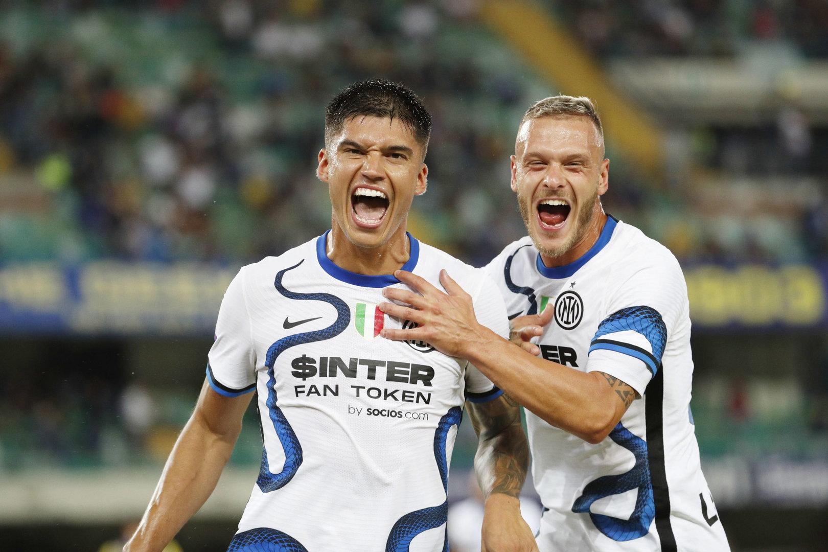 Titelverteidiger Inter Mailand hat auch sein zweites Saisonspiel in der italienischen Fußball-Meisterschaft gewonnen. Die Mailänder rangen Hellas Verona nach frühem Rückstand am Freitagabend auswärts noch mit 3:1 (0:1) nieder.