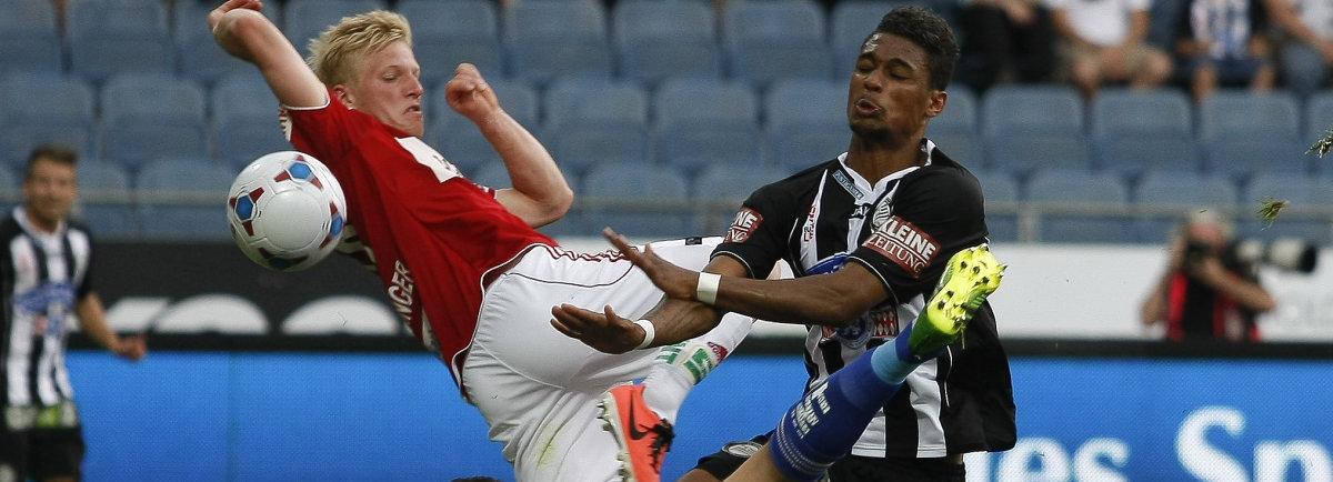 Die Oberösterreicher hatten durch einen Hadzic-Kopfball aus kurzer Distanz eine einzige große Chance in der ersten Halbzeit (28.), danach übernahmen die Heimischen das Kommando. Und kamen nach einer Standardsituation auch zur Führung. Nach einem Kröpfl-Eckball kamen die beiden Innenverteidiger Feldhofer und Vujadinovic quasi gemeinsam zum Kopfball, den abspringenden Ball beförderte der bedrängte Grössinger vor Sturm-Angreifer Okotie ins eigene Tor (36.).