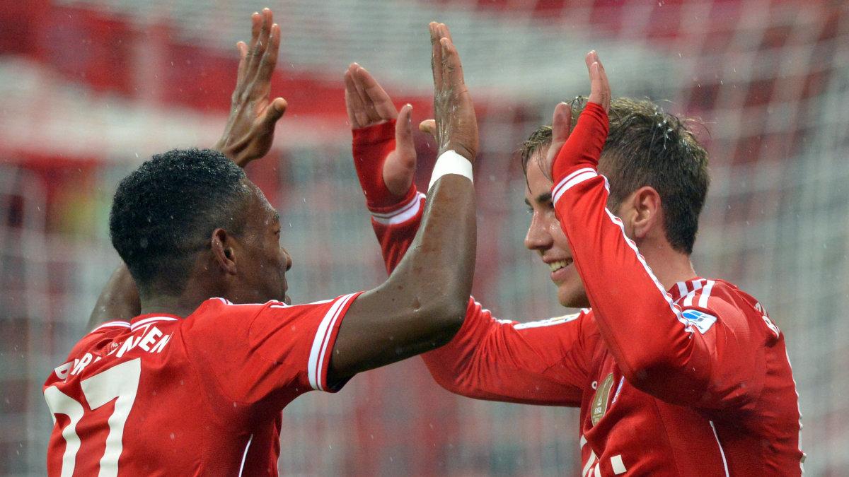 Mario Götze (12.), Franck Ribery (44.), Arjen Robben (67.), Dante (69.) und Mario Mandzukic (89.) machten vor 71.000 Zuschauern in der ausverkauften Münchner Arena den 17. Saisonsieg perfekt. Mandzukic, der nach seiner Ausbootung beim Sieg in Mönchengladbach wieder in der Startelf stand, überzeugte auch als Vorbereiter der ersten beiden Treffer.