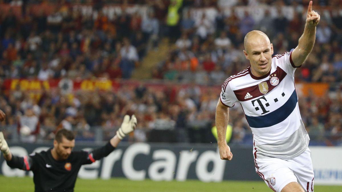 Angeführt von den herausragenden Arjen Robben (Bild) und Philipp Lahm bot Bayern München nach vier Siegen und 16:0 Toren in der deutschen Bundesliga auch in der Königsklasse eine Gala-Vorstellung. Beim chancenlosen AS Rom gewannen die Münchner mit sehenswerten Toren und feinen Kombinationen 7:1.