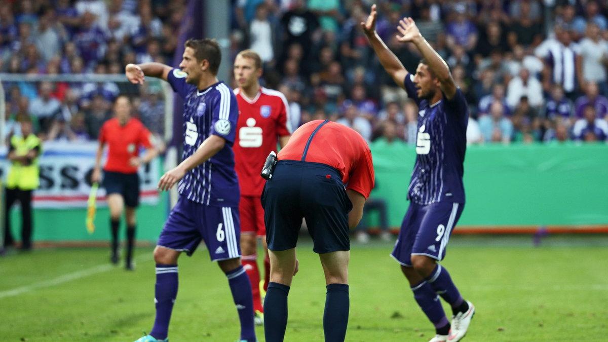 Die Cup-Partie in Osnabrück wurde in der 71. Minute beendet, da Schiedsrichter Martin Petersen aus dem Heim-Sektor ein Feuerzeug auf den Kopf geworfen bekam. Drittligist Osnabrück hatte zu diesem Zeitpunkt überraschend 1:0 geführt. "Das ganze Spiel über flogen Feuerzeuge, Trinkbecher und andere Wurfgegenstände in Richtung unserer Spieler sowie unserer Auswechselspieler, die sich gerade warmliefen", erklärte Rangnick. Die Verletzung des Schiedsrichters sei mit Sicherheit kein Einzelvergehen gewesen.