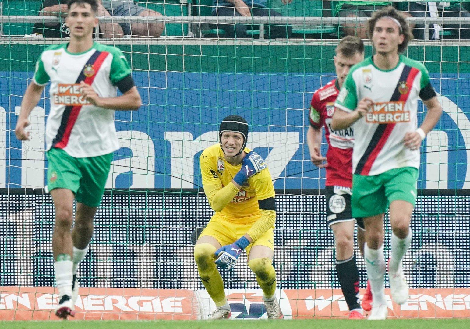 "Wir schauen von Tag zu Tag", sagt der an der Schulter lädierte Rapid-Tormann Strebinger
