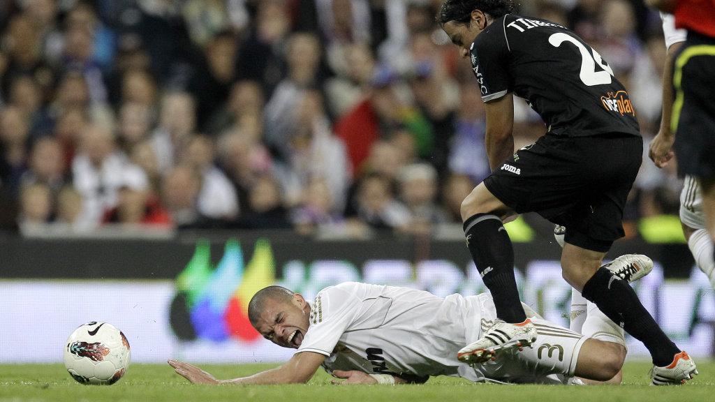 Verteidiger Pepe krümmte sich nach einem Foul von Valencias Pablo Piatti am Boden. Als ihn Mitspieler Alvaro Arbeloa am Arm emporzog, um ihm zu signalisieren, dass die schauspielerische Einlage fehl am Platze war, reagierte der Portugiese mit einem Tritt.