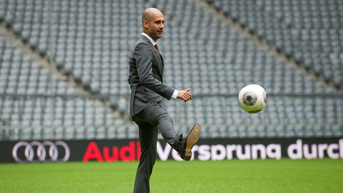 epa03757693 Bayern Munich's new Spanish head coach Josep 'Pep' Guardiola performs during his presentation as new coach of the German Bundesliga side in Munich, Germany, 24 June 2013. EPA/ANDREAS GEBERT