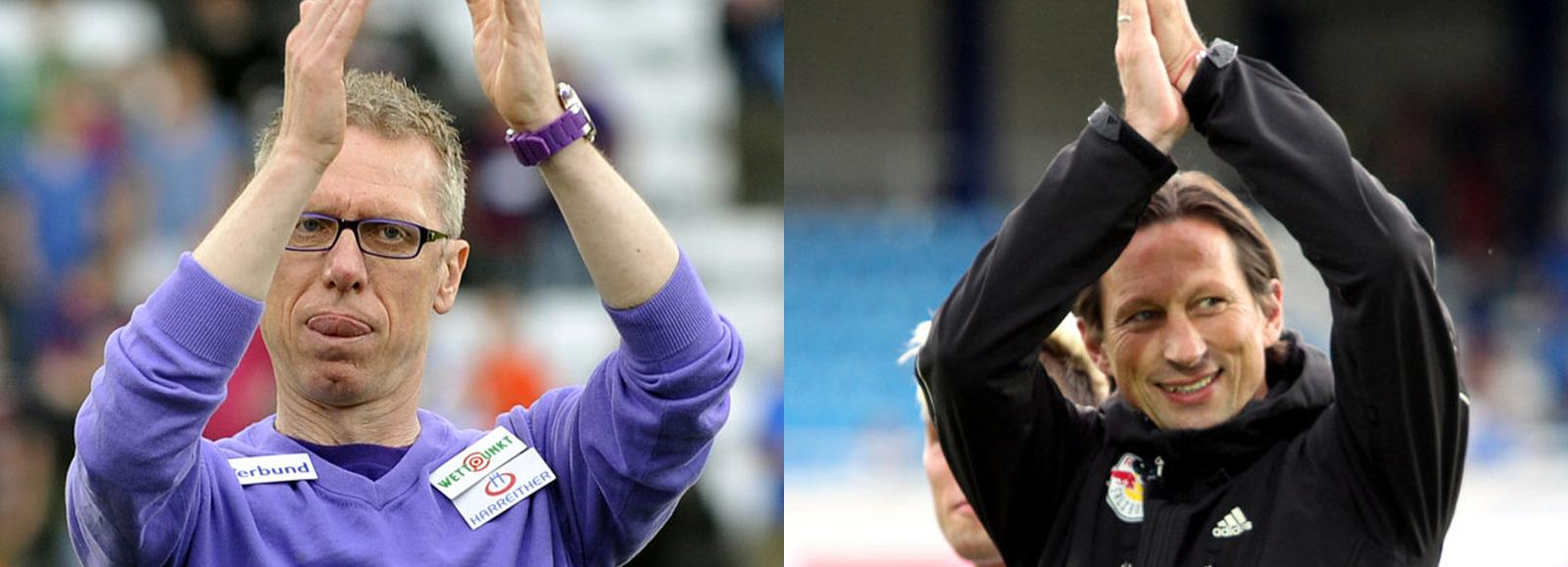 Nicht nur im Titelkampf hat Austria-Trainer Peter Stöger die besseren Karten als Salzburg-Coach Roger Schmidt