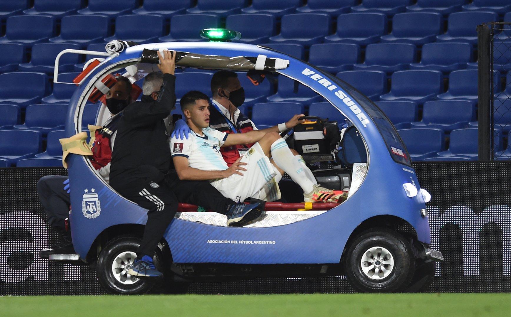 Ungeplante Dienstfahrt: Exequiel Palacios musste vom Spielfeld chauffiert werden.