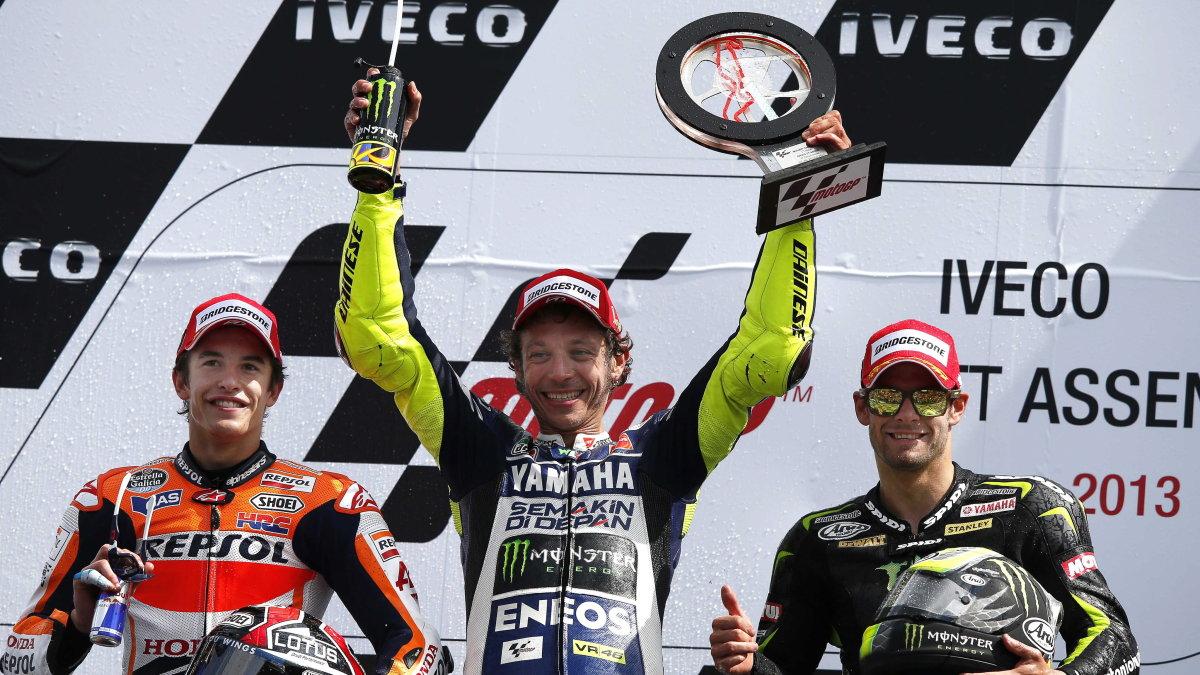 Rossi lieferte in Nordholland eine Show ab, die seine Fans lange vermisst hatten. Der in allen Klassen insgesamt neunfache Weltmeister übernahm auf seiner Yamaha in Runde sechs die Führung und gab diese nicht mehr ab. Auf dem Siegerpodest war Rossi die Erleichterung anzumerken. "Ich habe mir immer die Frage gestellt: Kannst du es noch, kannst du noch gewinnen", meinte der 34-Jährige und ergänzte: "Heute am Morgen wusste ich, dass es mein Tag wird."