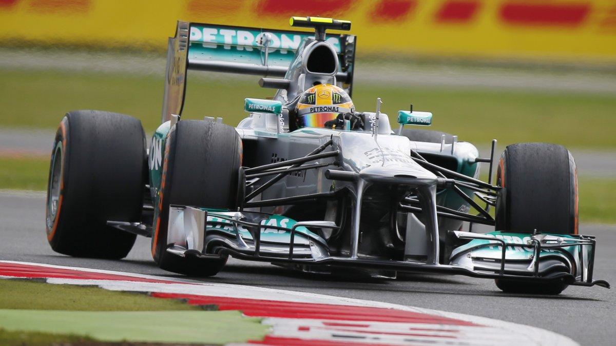 Lewis Hamilton nimmt sein Heimrennen in Silverstone von der Pole Position aus in Angriff. Der Mercedes-Pilot war am Samstag im Qualifying für den Formel-1-Grand-Prix von Großbritannien eine Klasse für sich. Dank einer Fabelrunde verwies der Brite seinen Mercedes-Kollegen Nico Rosberg auf Platz zwei. WM-Spitzenreiter Sebastian Vettel musste sich im Dauerduell mit den Silberpfeilen mit Rang drei vor Red-Bull-Stallrivale Mark Webber begnügen. "Lewis kennt offenbar ein paar Abkürzungen", scherzte der Dreifach-Weltmeister aus Deutschland und beteuerte: "Wir haben alles getan, was wir konnten."