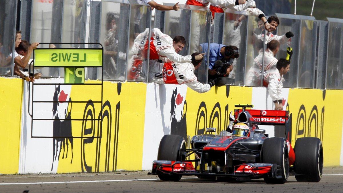 REUTERSMcLaren Formula One driver Lewis Hamilton of Britain celebrates after winning the Hungarian F1 Grand Prix at the Hungaroring circuit near Budapest July 29, 2012. REUTERS/Bernadett Szabo (HUNGARY - Tags: SPORT MOTORSPORT F1 TPX IMAGES OF THE DAY)