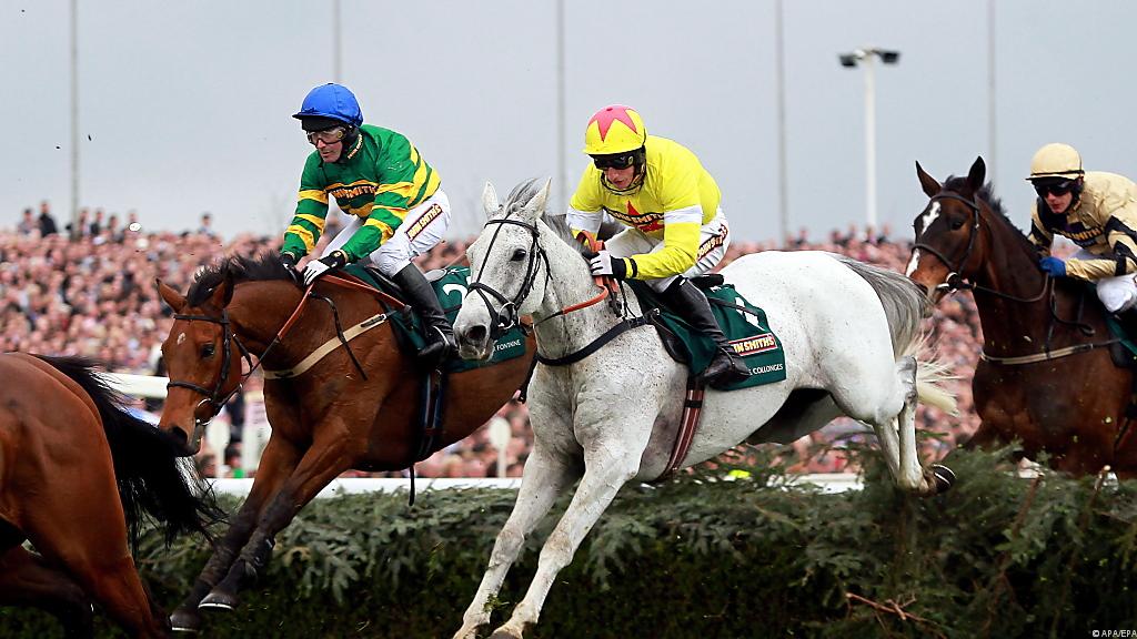Jockey Daryl Jacob verschaffte dem Schimmelwallach erst auf den letzten Zentimetern des über 7.242 Meter führenden Bewerbs den entscheidenden Millimeter-Vorteil vor Sunnyhill Boy (Richie McLernon).