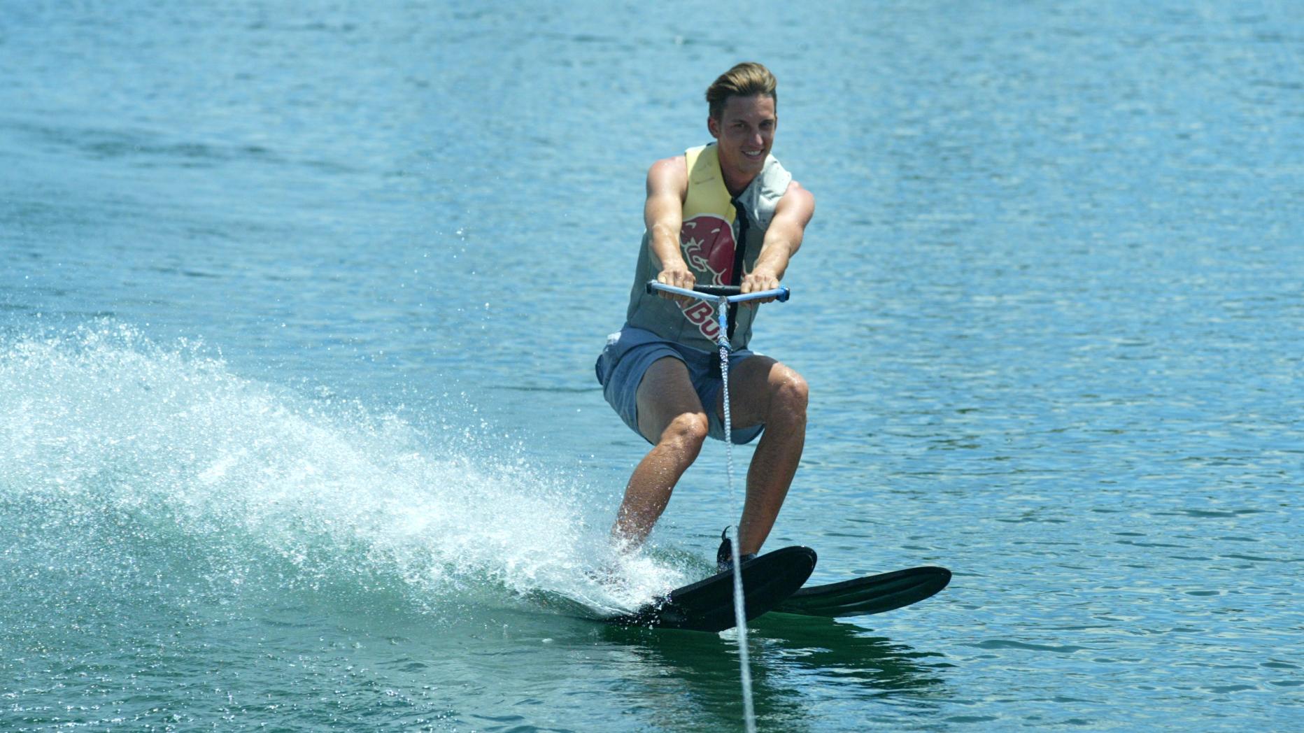 Gregor Schlierenzauer einmal anders: Der beste Skispringer der Welt bekommt auch für seine Versuche als Wasserskifahrer gute Haltungsnoten.