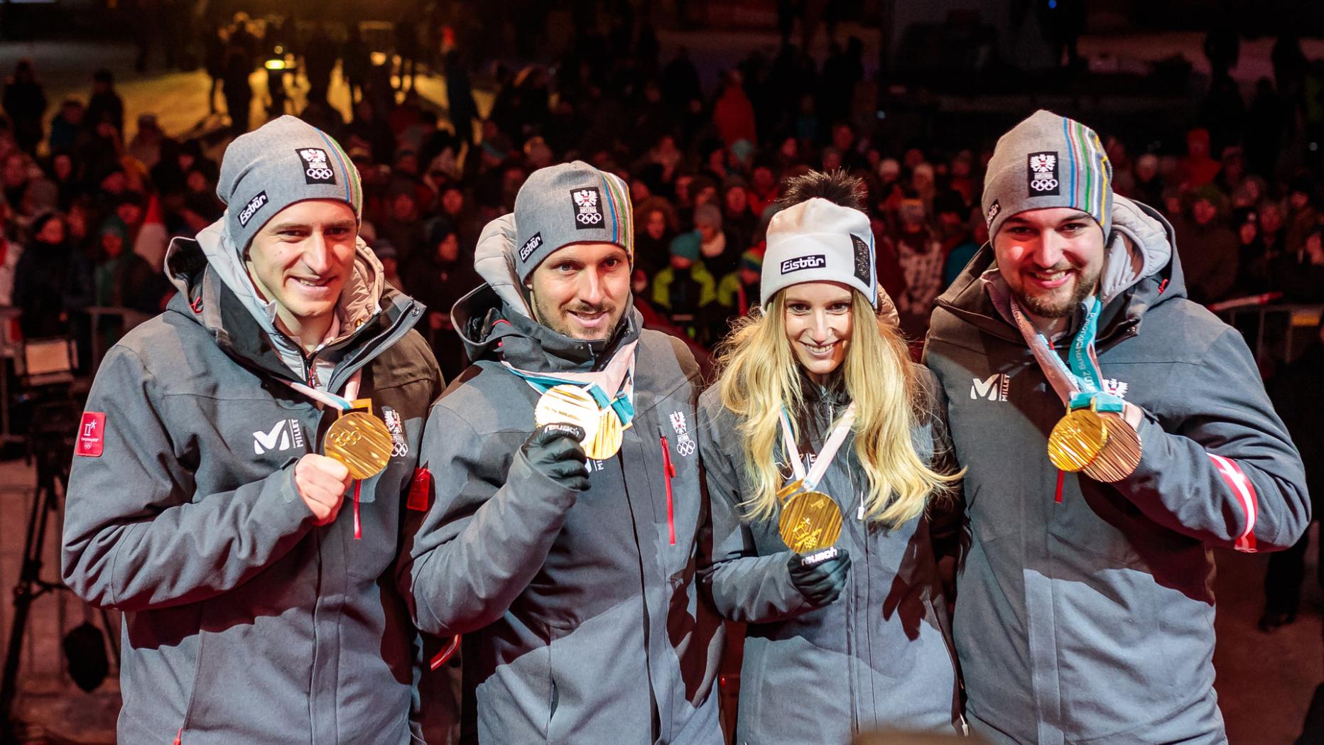 Bis auf die erkrankten Skifahrer Michael Matt und Manuel Feller traten alle österreichischen Gewinner der 14 Medaillen auf. Die Spiele in PyeongChang waren die dritterfolgreichsten für Österreich nach Turin 2006 (23 Medaillen) und Albertville 1992 (21).
