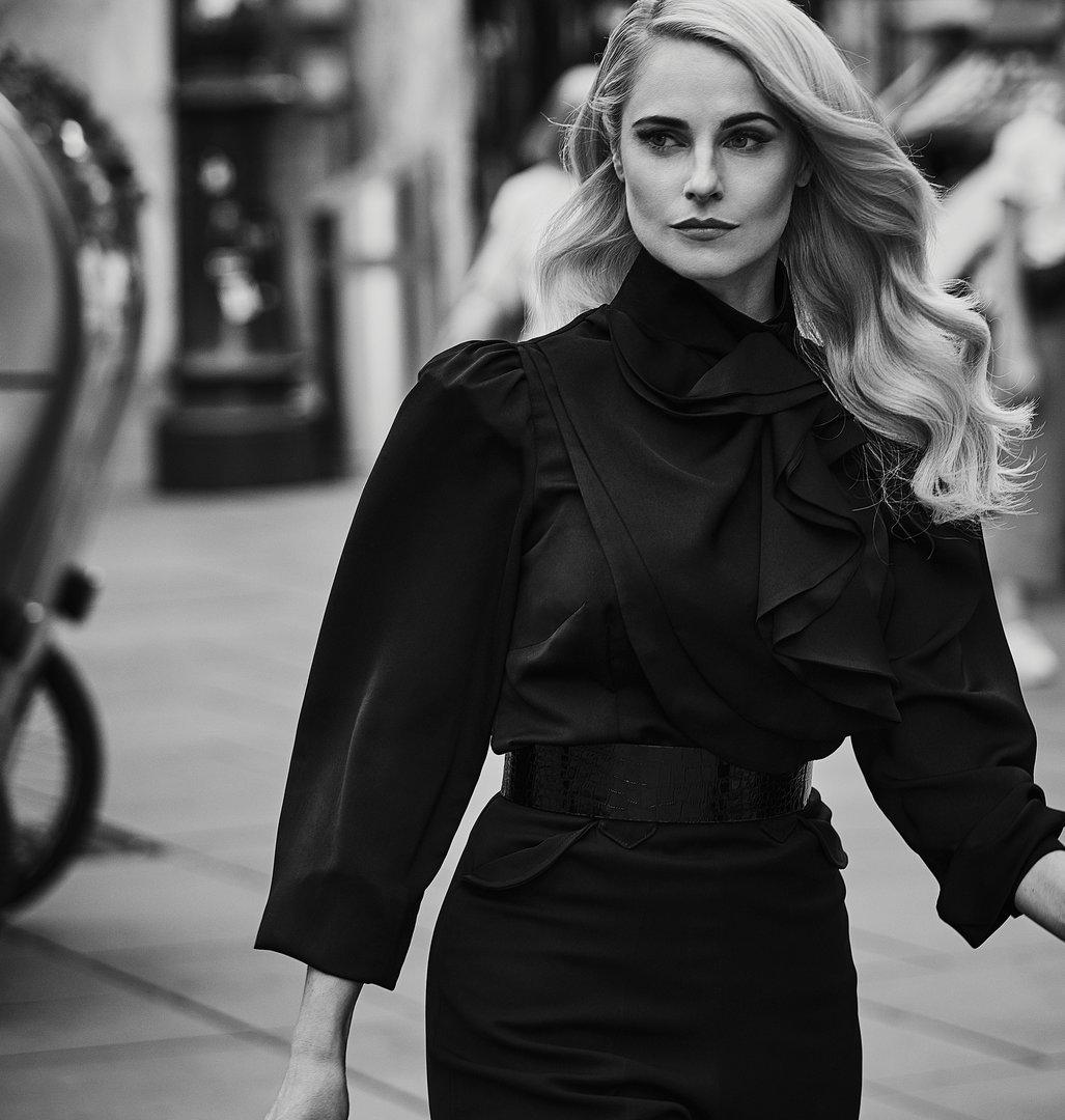 Auf Instagram macht sie schon einmal neugierig: "Der Stoff aus dem große Romanzen gewoben werden. Nach dem Juwelenraub dem Kugelhagel entronnen, schlüpft die Heldin in dieses tiefschwarze Meisterstück und tanzt mit ihrem Clyde den Kriminaltango", schreibt Schneider und schlägt damit die Brücke zu ihrer Kooperation mit Juwelier Bucherer.