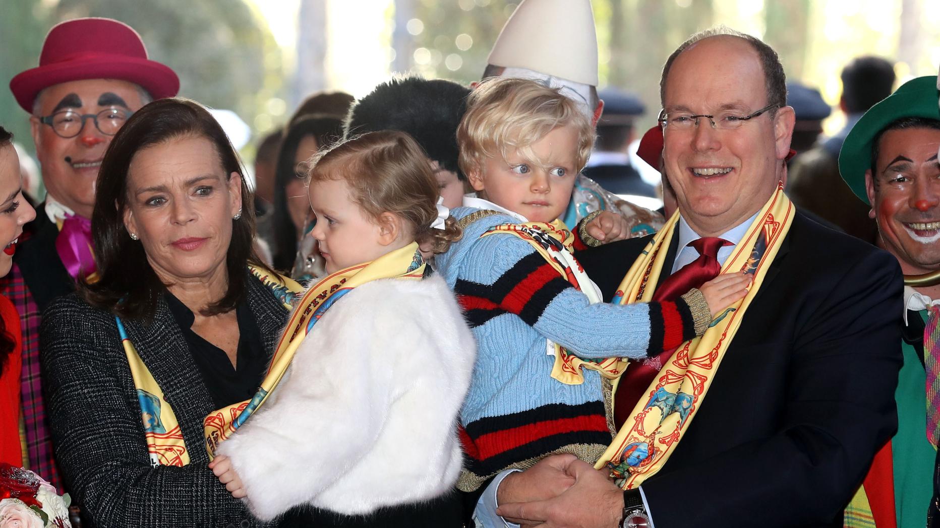 Mit Papa Albert und Tante Stephanie von Monaco zeigten sich die Zwillinge Gabriella und Jacques.