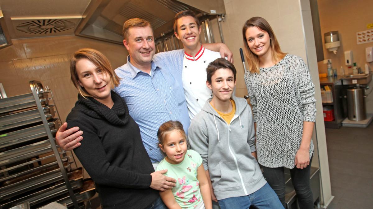 Die Hausmairs standen vier Stunden in der „Gruft“-Küche und zauberten: Mama Kerstin, Papa Herbert, Söhne Stefan & Johannes, Töchter Antonia & Lena