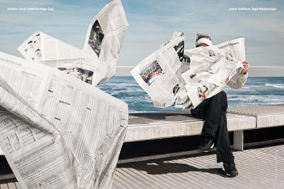 Er ist nun der Kopf des nächsten Kluge-Köpfe-Kampagnen-Flights. Das Sujet mit der vom Winde verwehten Zeitung erscheint - wie immer aus aktuellem Anlaß - im Vorfeld zur Louis Vuitton Trophy, die vom 12. bis 27. November in Dubai stattfindet. Schümann freut sich auf den dortigen Wind.