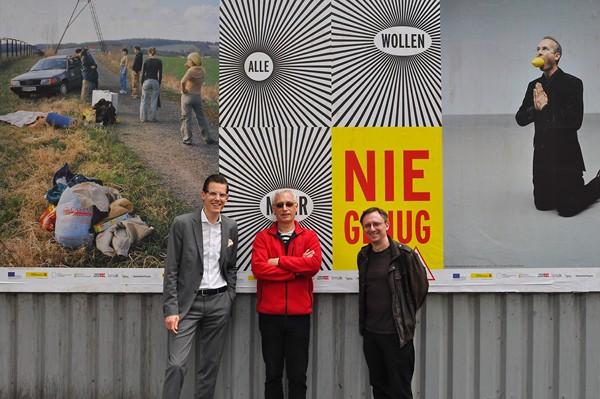 Philipp Pfeiffer (Epamedia) und die beiden Künstler und Projektverantwortlichen Josef Danner und Georg Lebzelter. (c: epamedia)