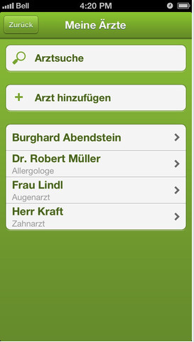 Die App kann zum Erstellen und Verwalten von Gesundheitsdaten sowie deren Weiterleitung an Ärzte und die Familie des jeweiligen Nutzers verwendet werden. Sie enthält ein Gesundheitswörterbuch, ein Arzt-Suche für Wien, Medikamentennamen und erinnert an die Einnahme von Arzneien, etc.