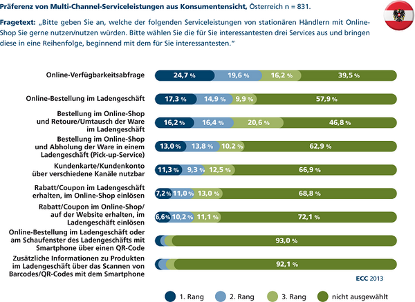 In diesen Service-Kosmos der nachgefragt wird, gehört beispielsweise die Verfügbarkeitsabfrage zu Produkten, ob online bestellte Ware stationär retourniert werden oder ob Waren in Läden online bestellt und direkt an Konsumenten geliefert werden können.