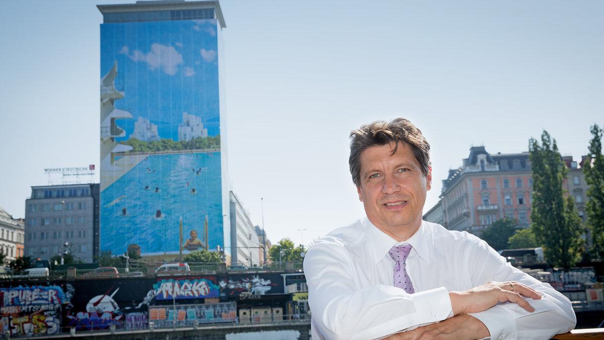 Er führt die Interviews im Hochhaus: "Am Ringturm ist man ganz oben und man hat eine Helikopter-Sicht. Wir wollen dort auch ein bisschen über den inhaltlichen Tellerrand und über den zeitlichen Horizont drüberschauen."