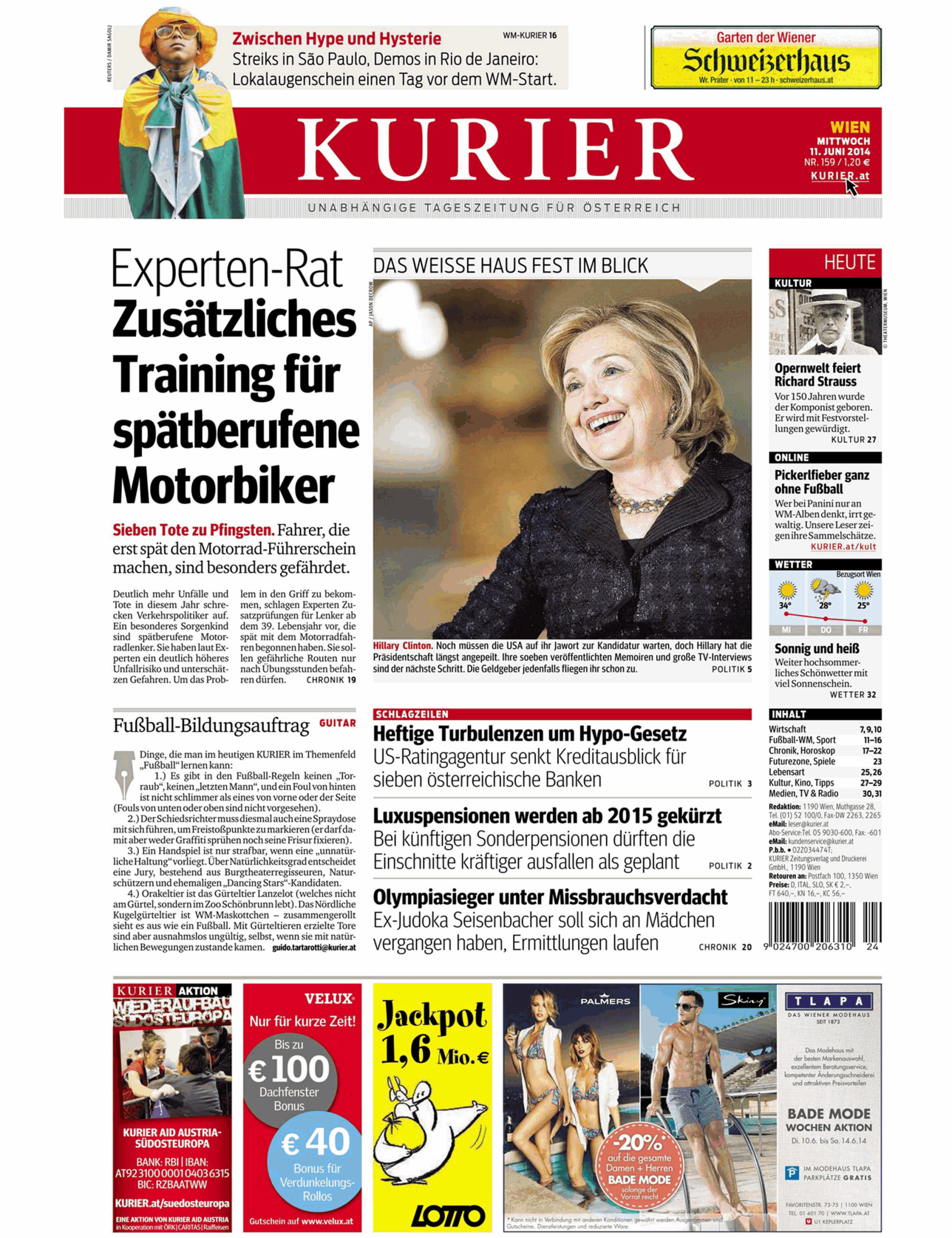infoSchlagzeile vom 11.06.2014Zusätzliches Training für spätberufene MotorbikerKurierkurier.at Wirtschaft atmedia Titelseiten vom 11.06.2014 06/11/2014, 08:58 AM Kommentare Teilen | 06/11/2014, 08:58 AM