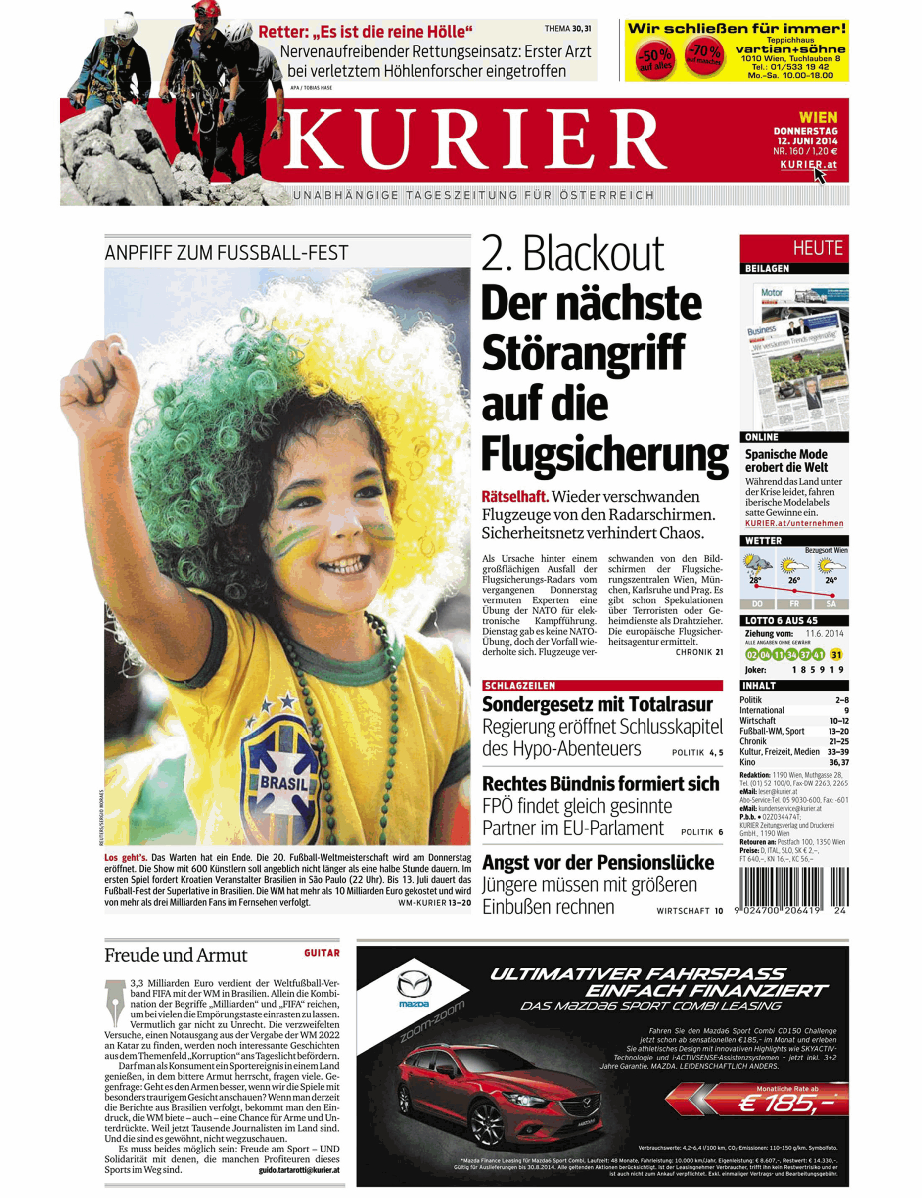 infoSchlagzeile vom 12.06.2014Der nächste Störangriff auf die FlugsicherungKurierkurier.at Wirtschaft atmedia Titelseiten vom 12.06.2014 06/12/2014, 09:17 AM Kommentare Teilen | 06/12/2014, 09:17 AM