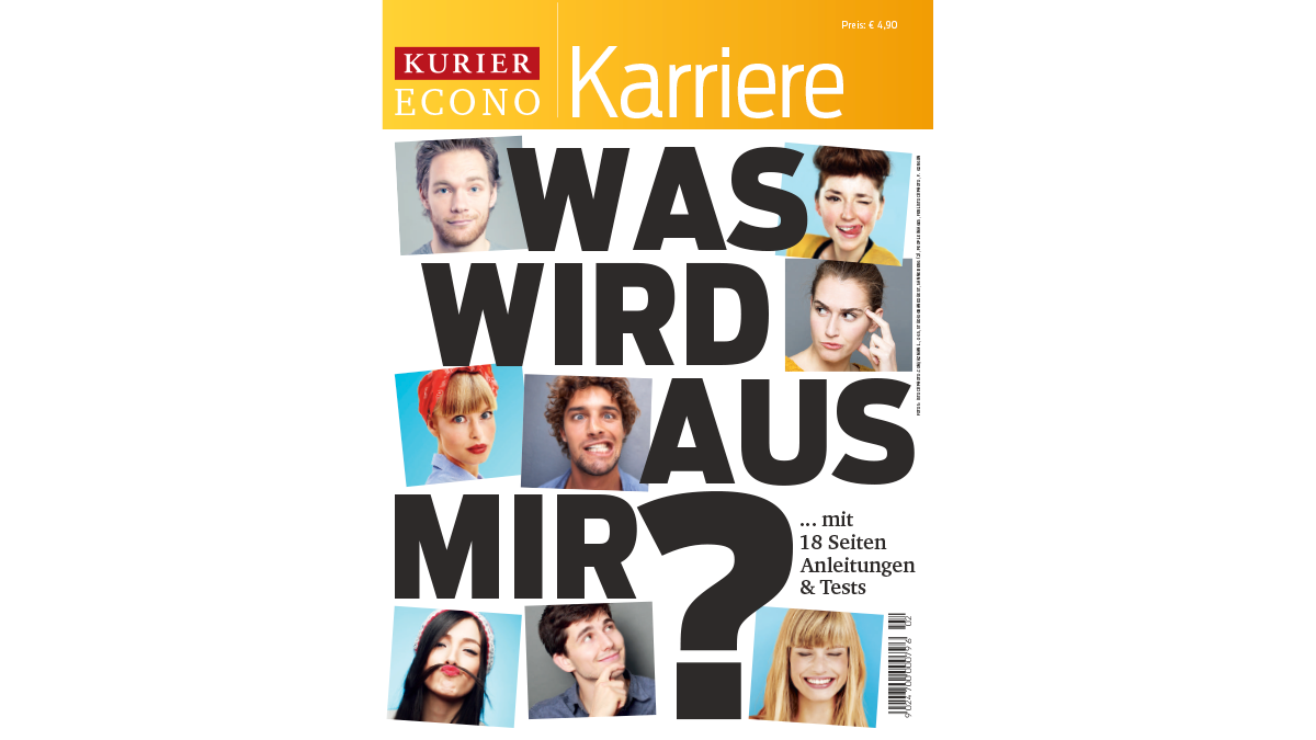 Seit 31. Jänner im Handel: Das KURIER-Magazin "Karriere – Was wird aus mir?". Erhältlich ist das Premiummagazin um 4,90 Euro in allen Trafiken und Verkaufsstellen, über die KURIER-ePaper-App oder – versandkostenfrei – unter magazin@kurier.at.