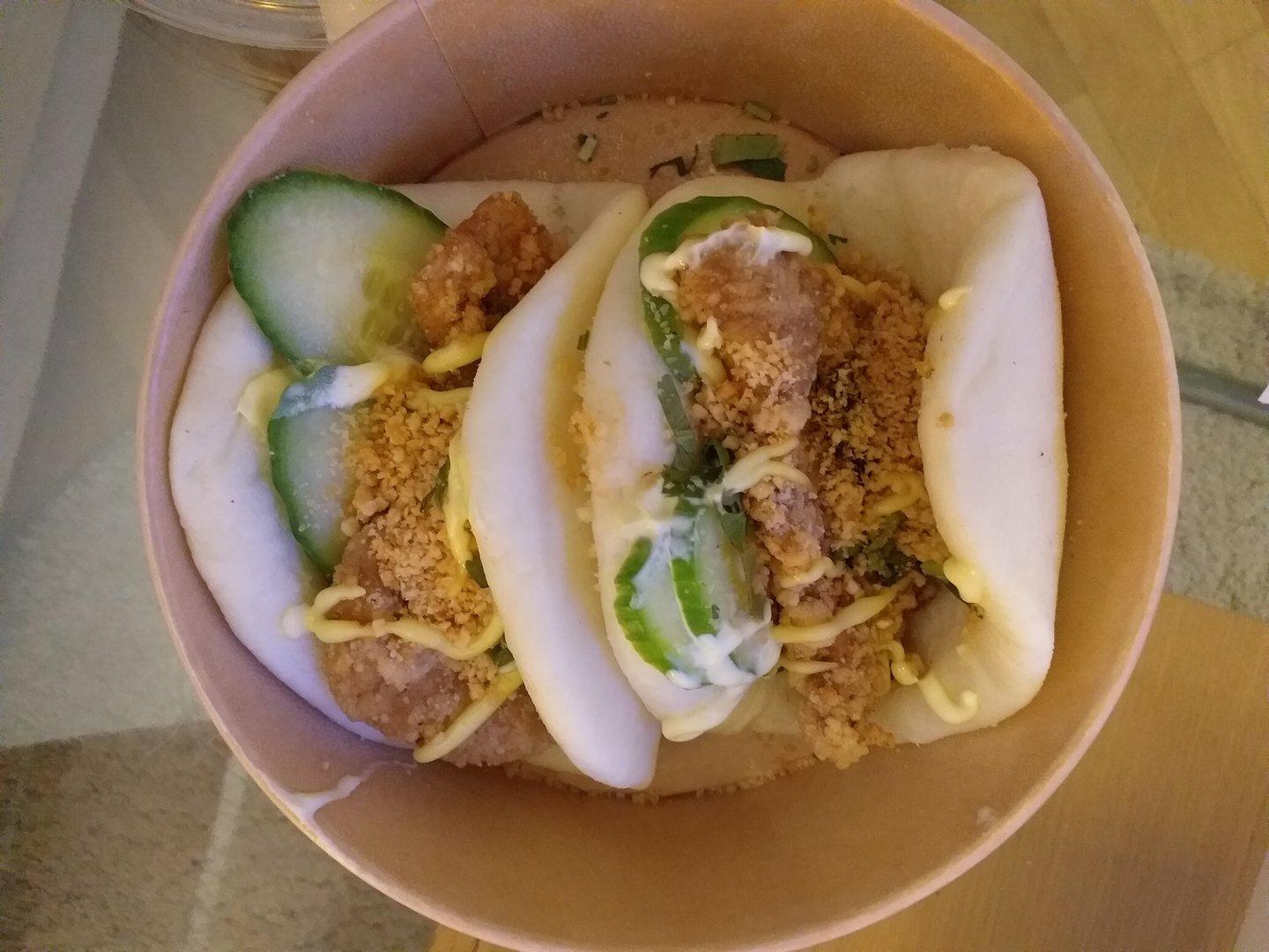 Leider ändert vormals Knuspriges auf dem Lieferweg seinen Aggregatzustand. Es empfiehlt sich also, auf alles Gedämpfte auszuweichen – die köstlichen Germteigtaschen Sheng Jian Bao oder der Gua Bao Burger (gedämpfte taiwanesische Burger geliefert mit Koriander, Nori und Erdnüssen) sind herrlich und profitieren sogar davon, ein paar Kilometer weiter im Dampf zu garen.