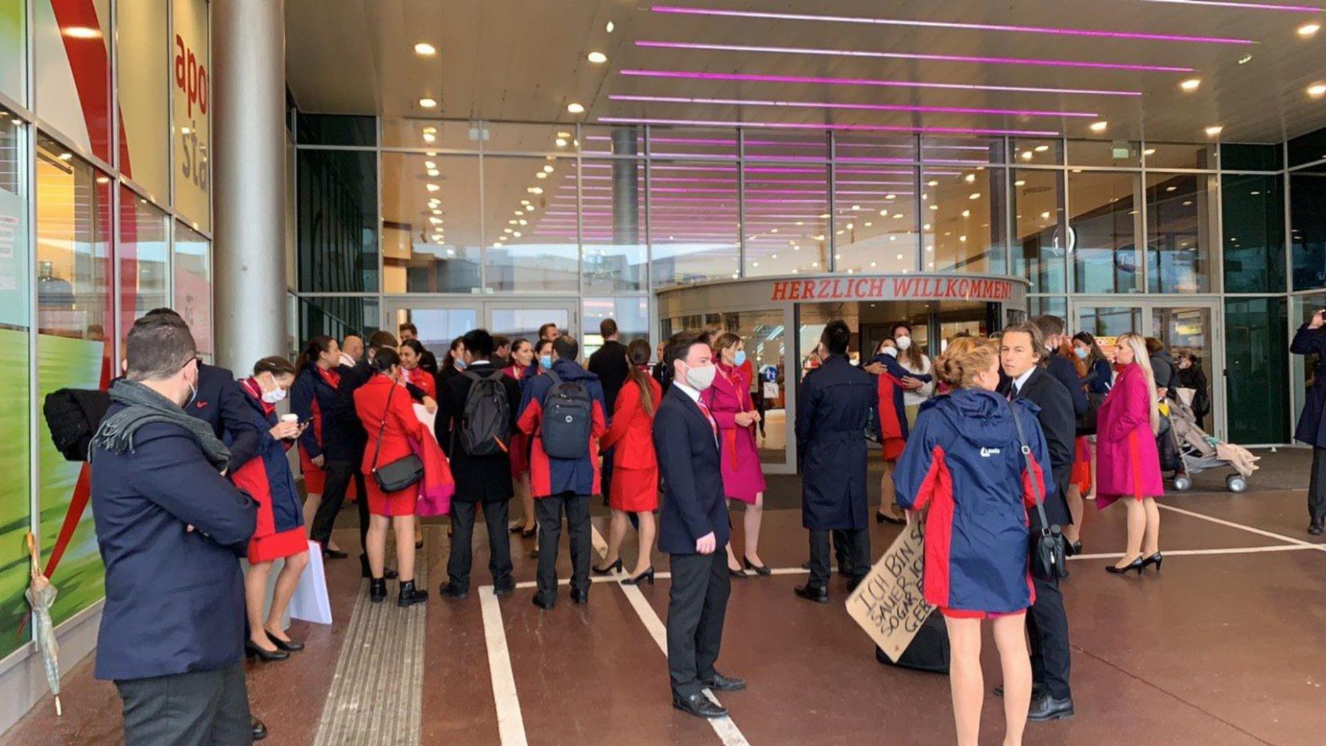 Piloten und Flugbegleiter Montag früh in der Gewerkschaftszentrale