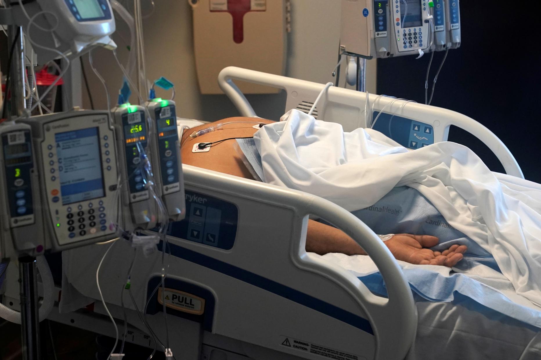 Ein Covid-19-Patient liegt im SSM Health St. Anthony Hospital in Oklahoma City auf dem Bauch, um ihm das Atmen zu erleichtern.