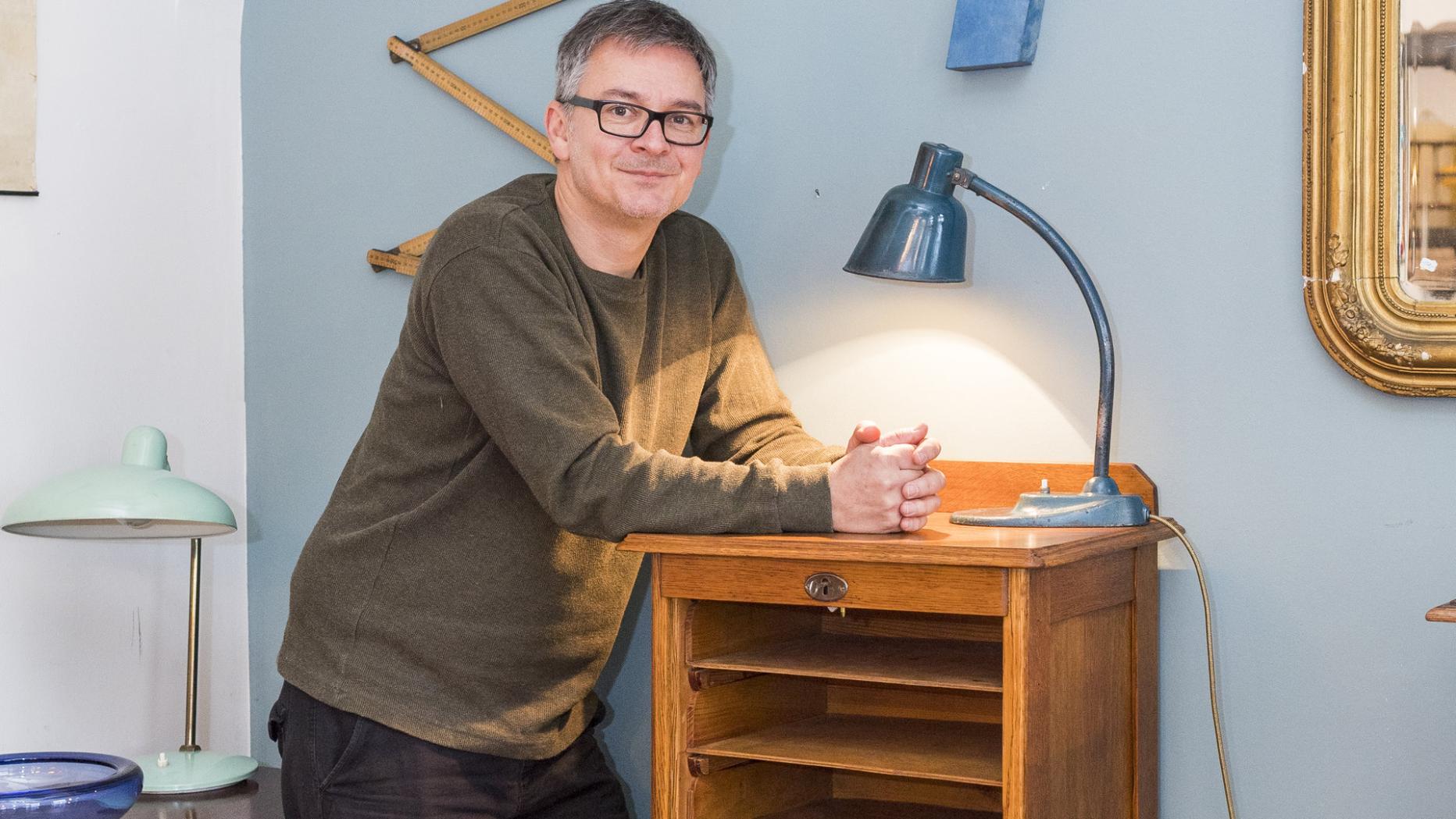 Ein seltener und glücklicher Fund sei auch die blaue Bauhauslampe der deutschen Designerin Marianne Brandt. "Sie ist im Originalzustand. Wir haben sie nicht neu lackiert. Das wäre schade, weil das auch den Charme dieser Lampen ausmacht", erzählt er. Restauriert ist dafür der Rollladen aus den 30er Jahren, auf dem die Bauhauslampe platziert ist. "Er ist aus massivem Eichenholz gefertigt und das Schöne daran ist, dass die einzelnen Fächer des Rollladens auch ausziehbar sind", so Hahnbauer.