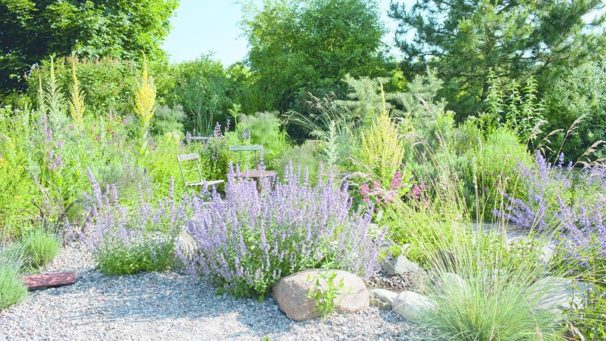 Kiesgärten. Das Material kann auch für dekorative Zwecke genutzt werden, etwa als Wegbelag oder Mulchmaterial. Dort wachsen auch Pflanzen mit satten Grüntönen, wie etwa die Präriestaude. Besonders geeignet für schattige Plätze sind die Herbst-Anemone, der gelbe Fingerhut oder die Gold-Platterbse. Wiesen-Kerbel und die Kronen-Lichtnelke fühlen sich in der Sonne gut aufgehoben.